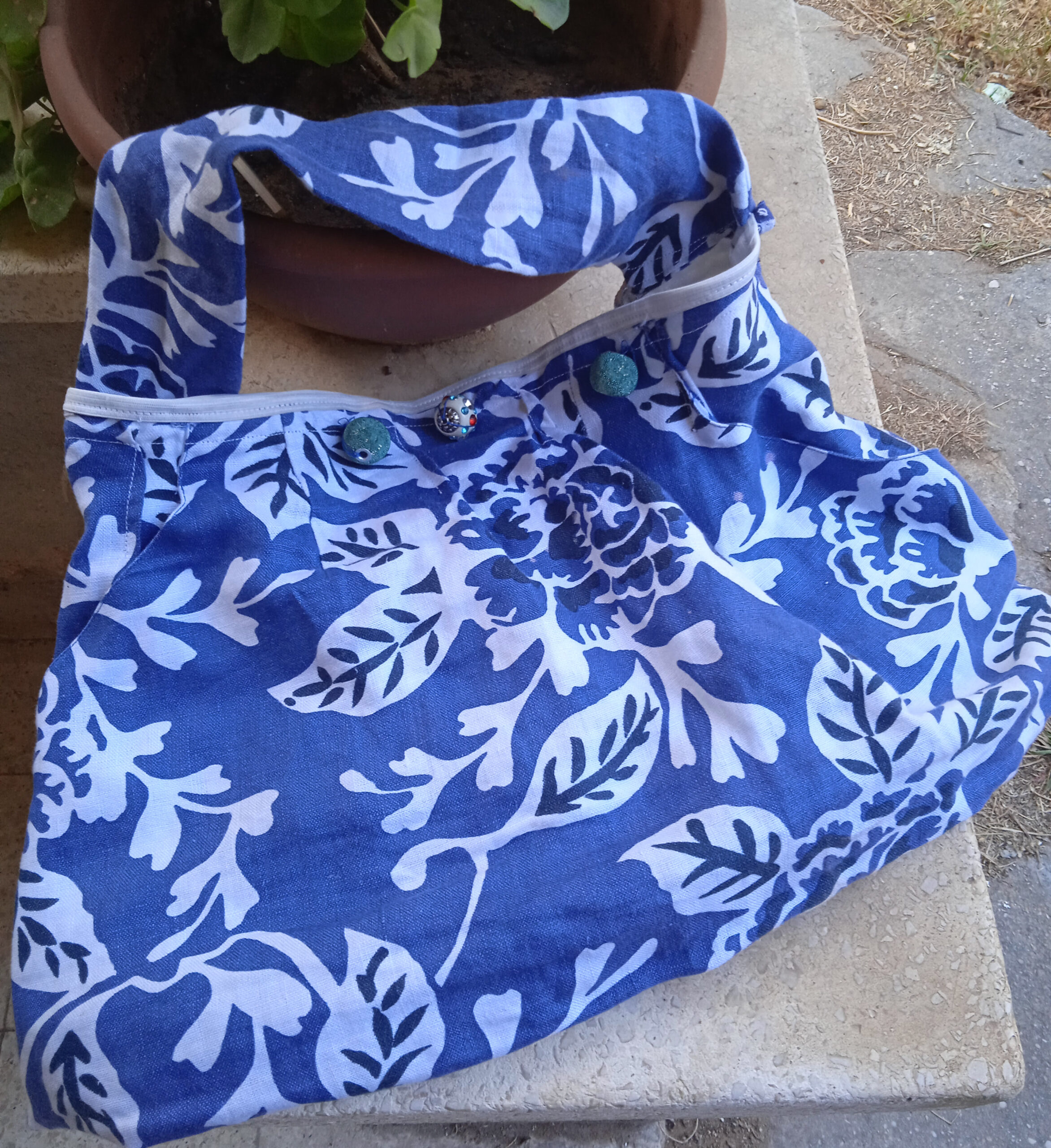 THIS LITTLE BAG HAS BEEN MADE WITH COLORED MATERIAL BLUE AND WHITE BOHEMIAN INSPIRATION